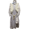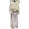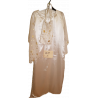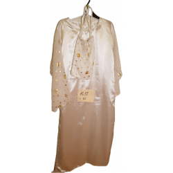 satén. šaty se silon. ruk. se zl. potiskem + doplňky vel m- l půjč. 250.-